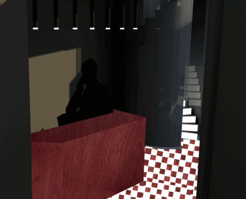 El diseño toma referencias de la estética de Lorca y su entorno en La Huerta de San Vicente, utilizando madera, tonos oscuros y una paleta inspirada en “Bodas de sangre” —rojo, negro y marrón— para crear un ambiente poético, teatral y acogedor en pleno corazón de la ciudad.