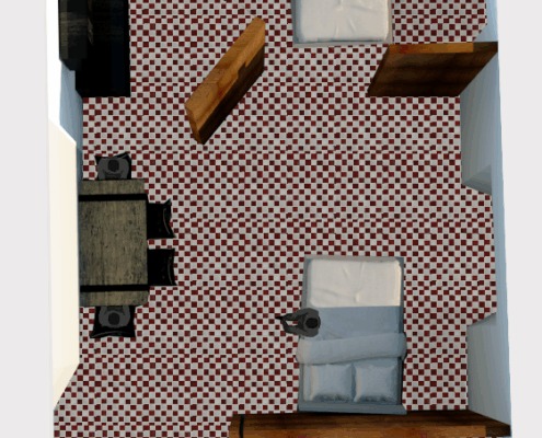 Las habitaciones cuentan con tabiques móviles multidireccionales, inspirados en escenarios teatrales y en elementos arquitectónicos como los del Palacio de Congresos de Marbella, que permiten reorganizar el espacio según las necesidades de cada visitante, ofreciendo desde espacios abiertos hasta privados.